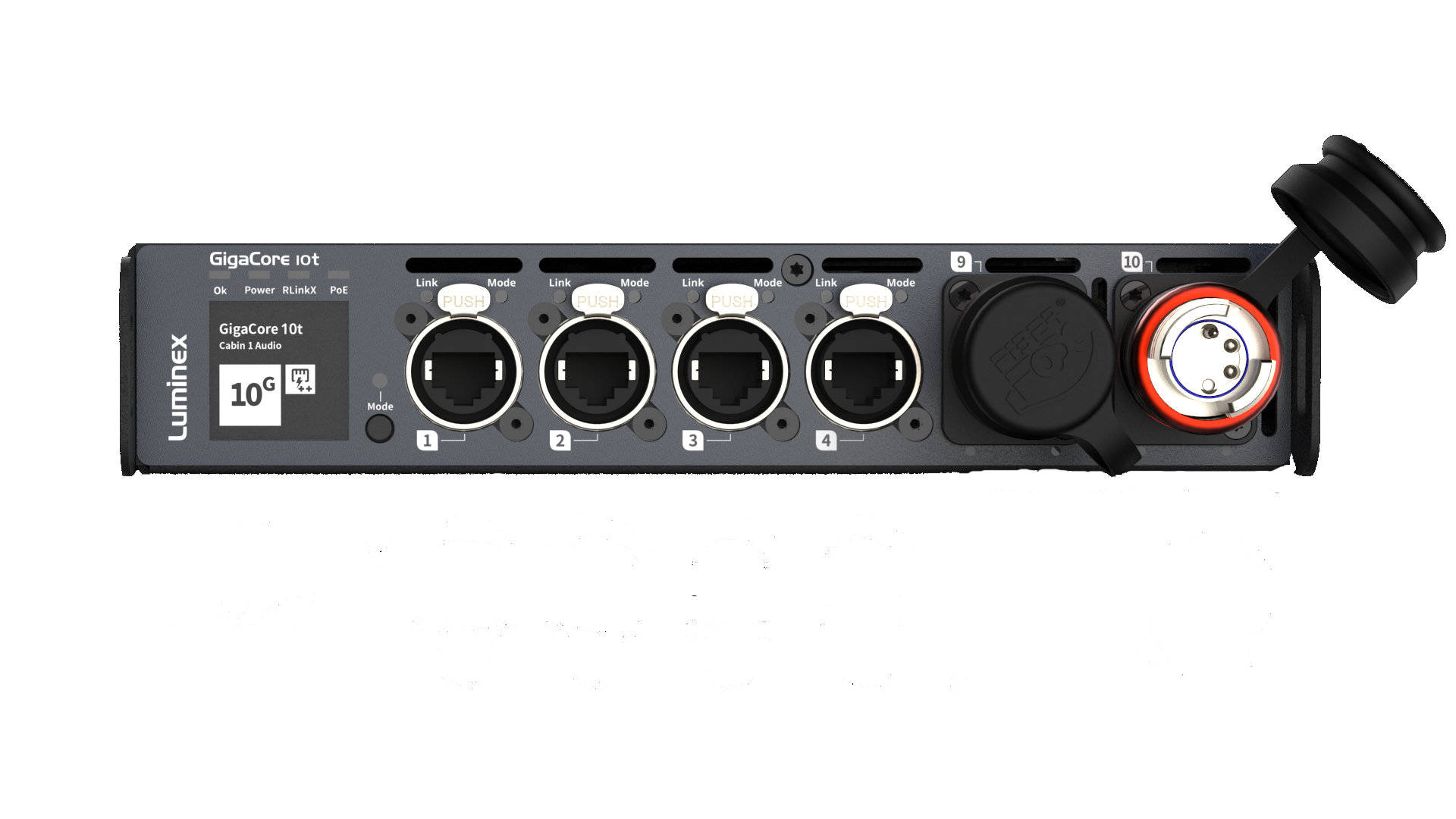 GigaCore 10t 是一款10 Gb 以太網交換機,適用于照明、音頻和視頻領域的專業(yè)巡演應用,需要頻繁拆卸和組裝,或用于需要加固連接的任何其他應用。它旨在支持最先進的開箱即用的 AV 協(xié)議,是融合網絡的骨干,允許多個應用程序在同一網絡上共存。